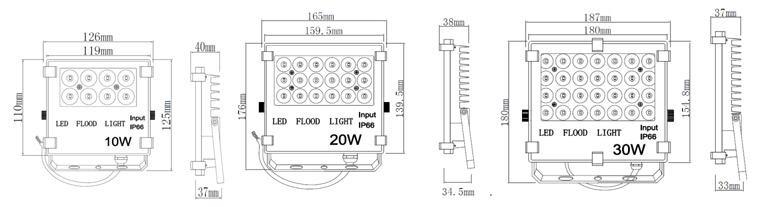 led泛光燈尺寸